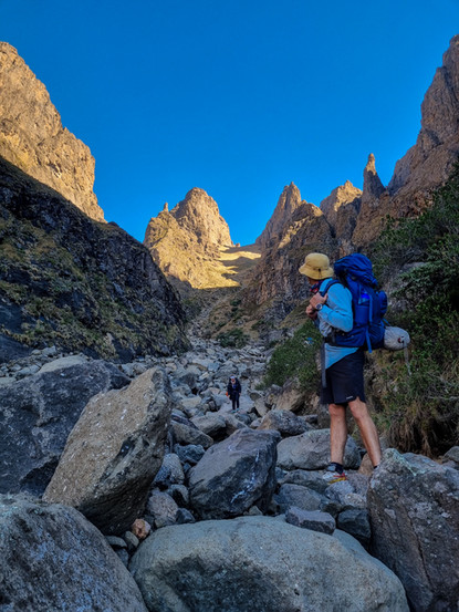 At this point you two options. There is a faint path that climbs steeply up a ridge on the true right, that you can follow until an elevation of about 2350m. The last two times I've done Ifidi I've missed it and so we've had a joyous long day of boulder hopping (which I really enjoy!).